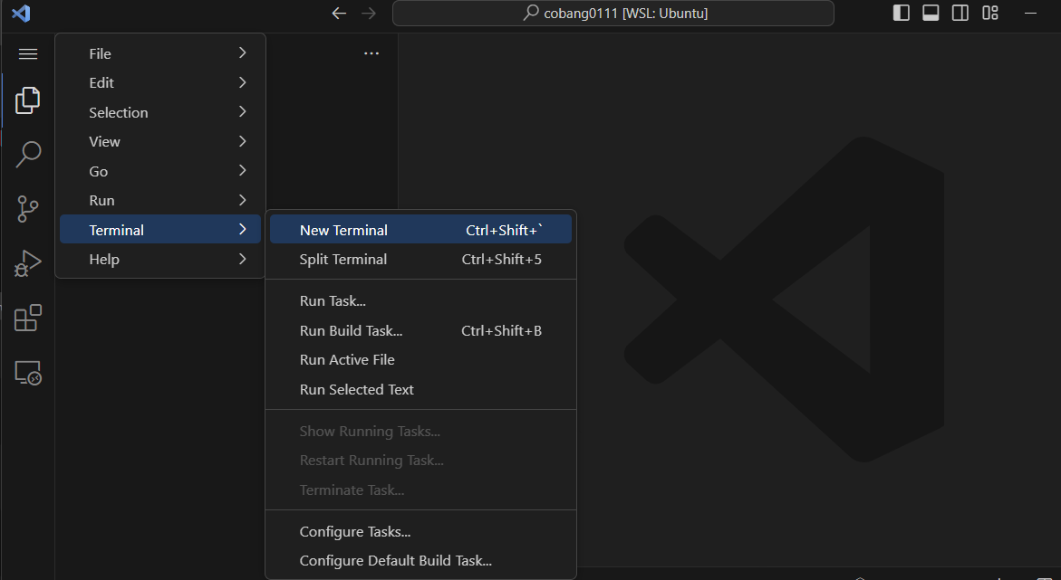 좌측 상단의 ≡ 버튼을 눌러 New Terminal 을 열 수 있다.