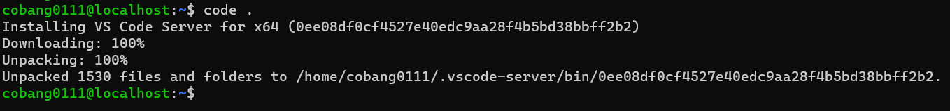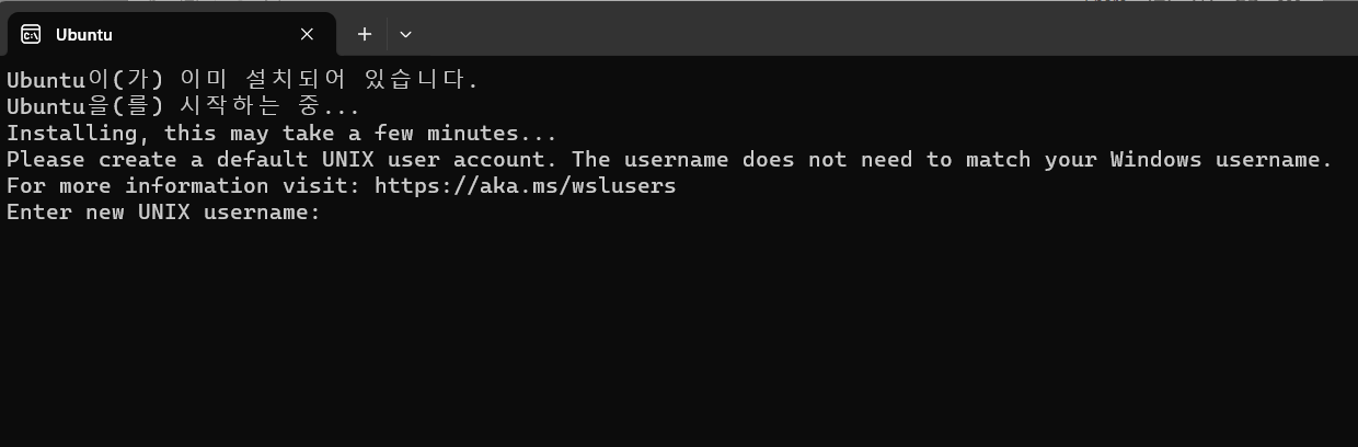 만약 닫아버렸다면 윈도우에서 WSL 앱을 다시 실행하면 된다.