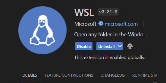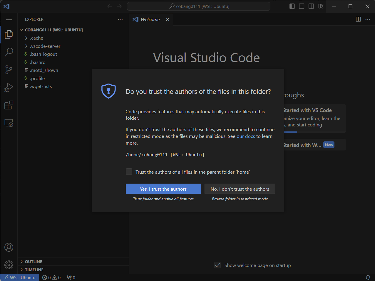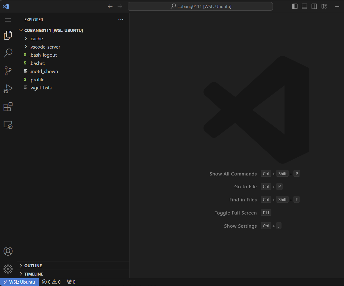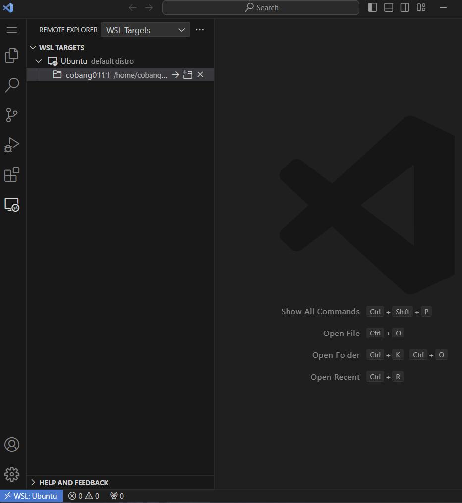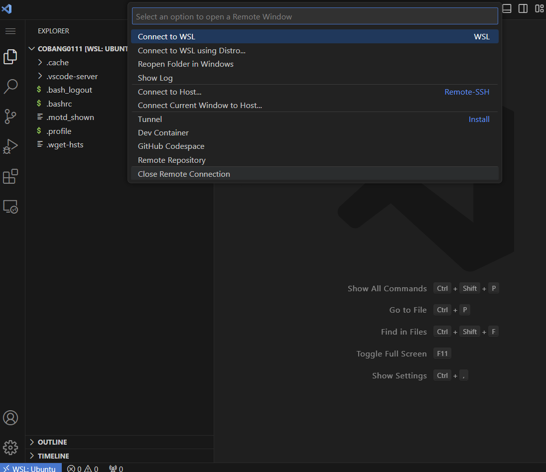 현재 상태는 WSL 환경에 연결되어 있는 상태이다.