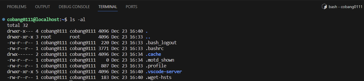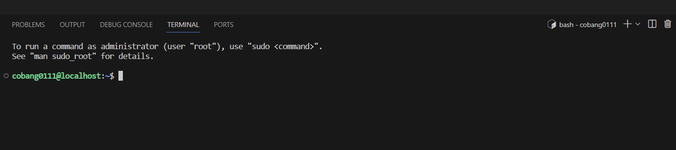 이제 이 터미널에서 명령을 수행시킬 수 있다.