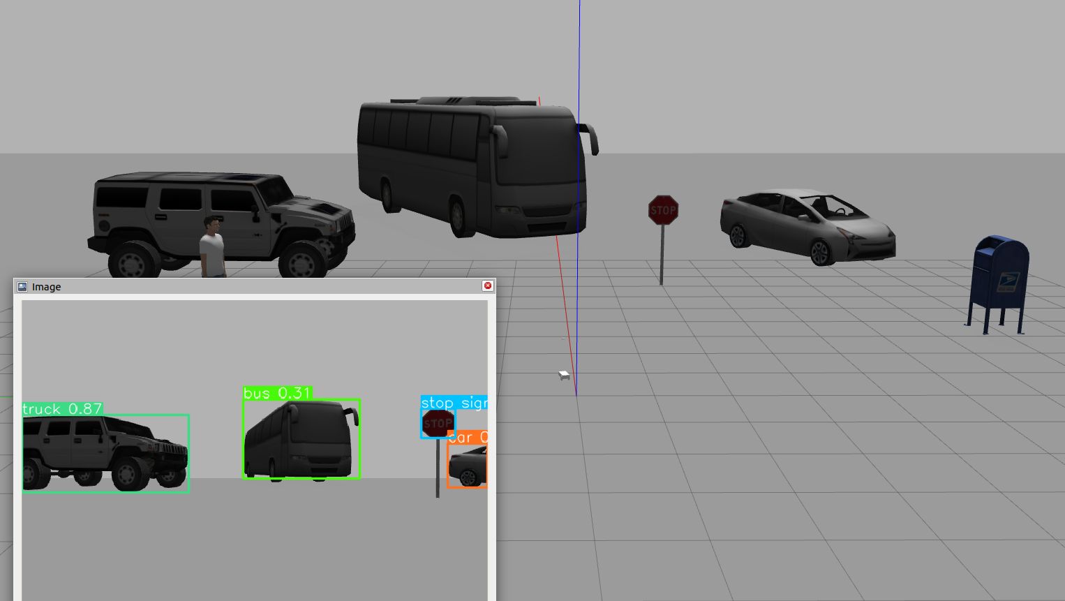 ROS2 humble에서 yolov8을 사용하여 Gazebo 환경에서 실시간 영상 분석을 수행하고 rviz를 통해 현재 카메라 화면을 확인할 수 있는 예제입니다.