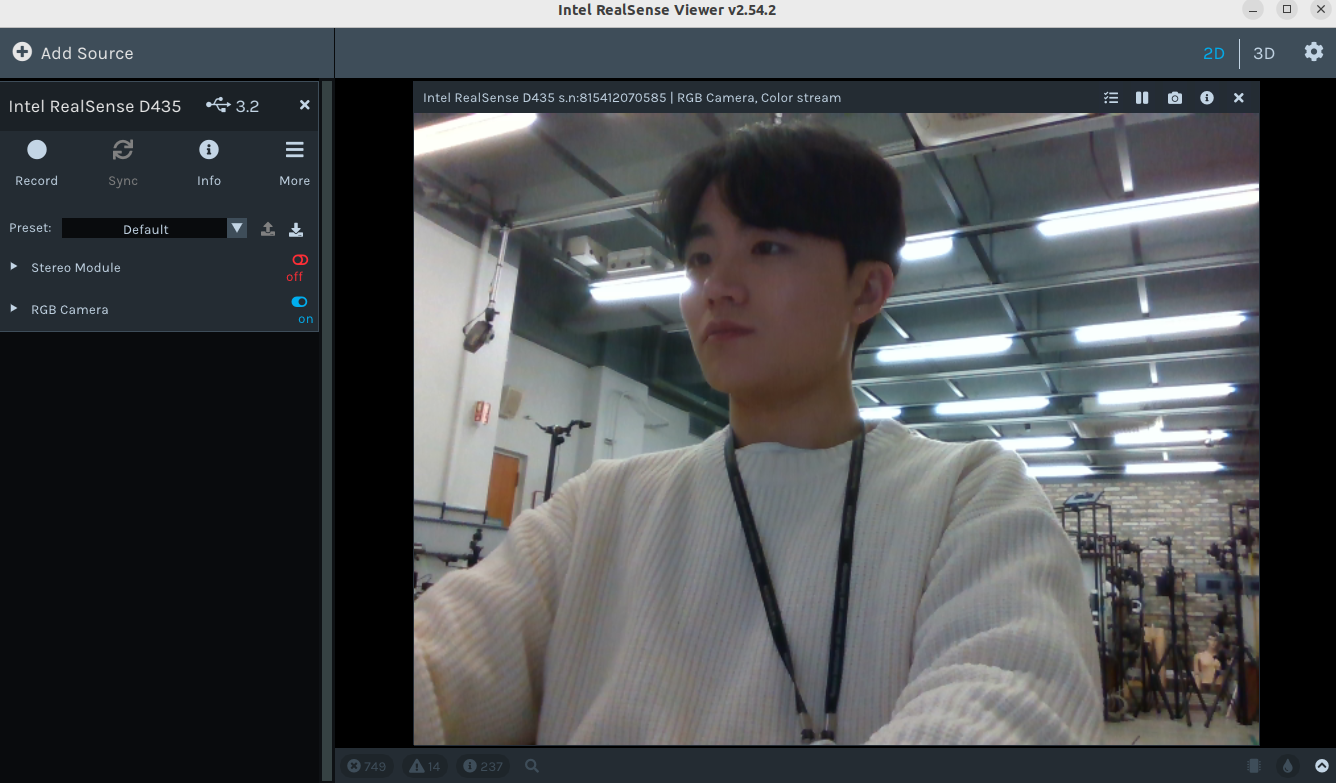 그럼 먼저 USB로 Intel RealSense D435 를 연결해보겠습니다.