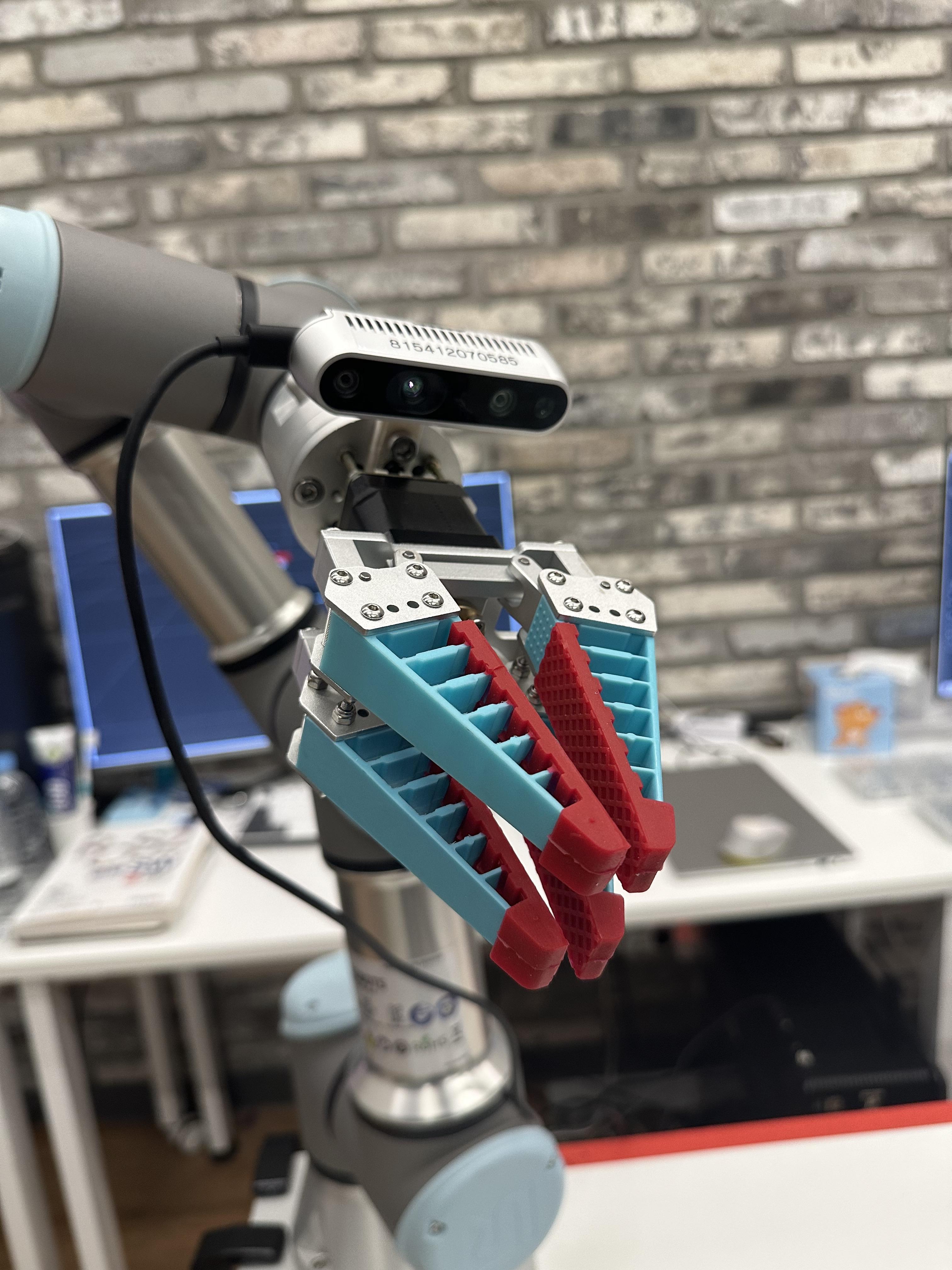 3D 프린팅을 통해 그리퍼에 Intel RealSense D435를 장착시켰습니다.