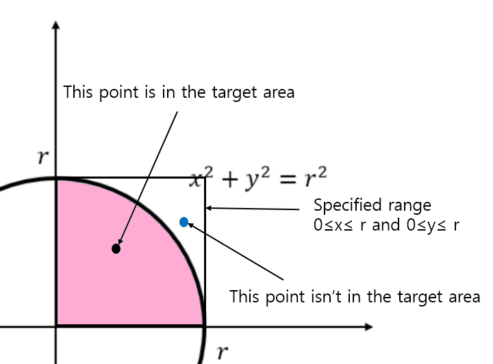 For example, if we want to get the area of the quarter circle like the below picture.